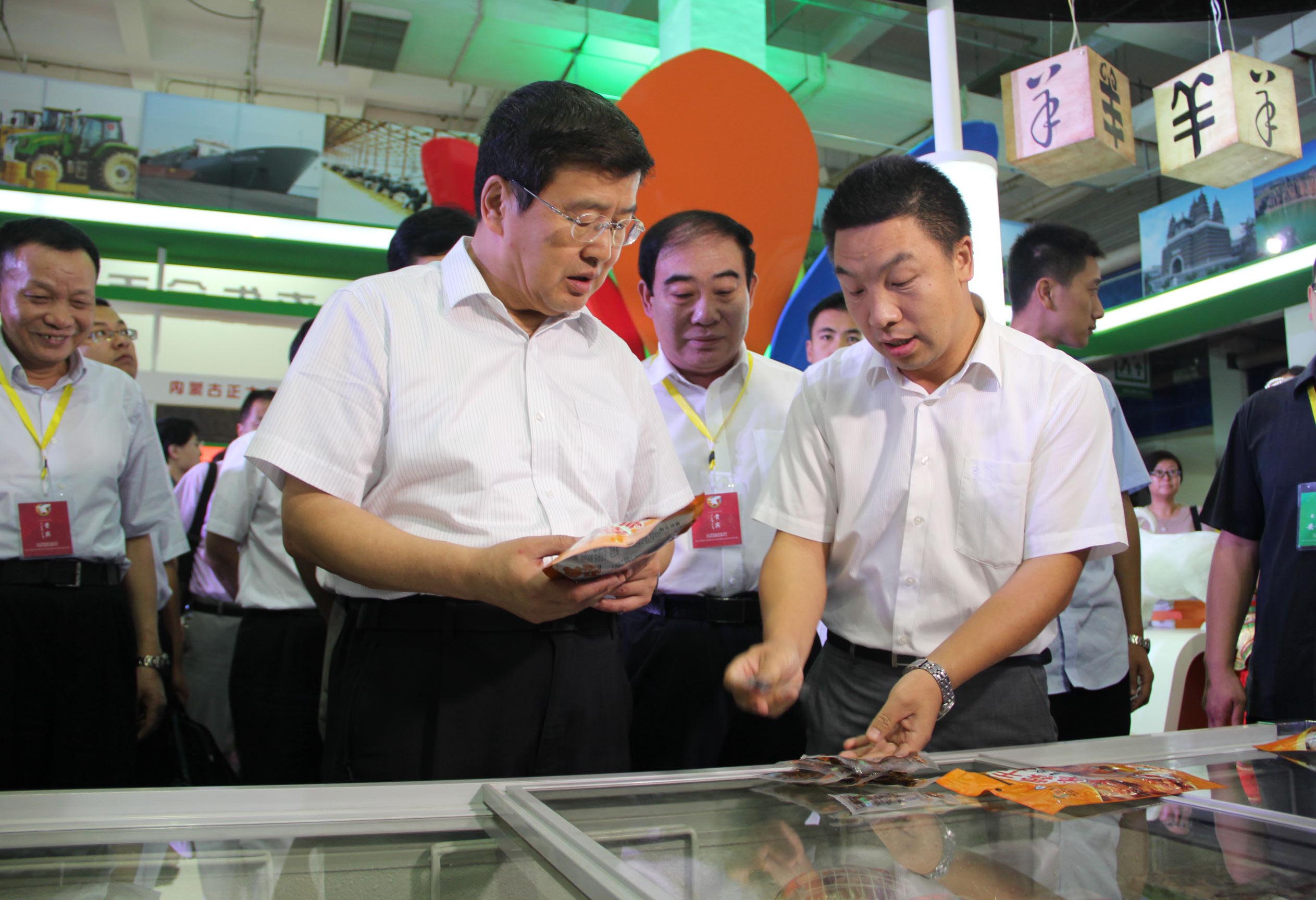 在綠博會開幕前,自治區(qū)黨委副書記、自治區(qū)主席巴特爾,國家農業(yè)部副部長于康震,自治區(qū)農牧業(yè)廳廳長郭健等領導同志參觀了綠博會展區(qū)。巴特爾主席對各盟市在建設綠色農畜產品生產加工輸出基地方面所取得的成績給予充分肯定。