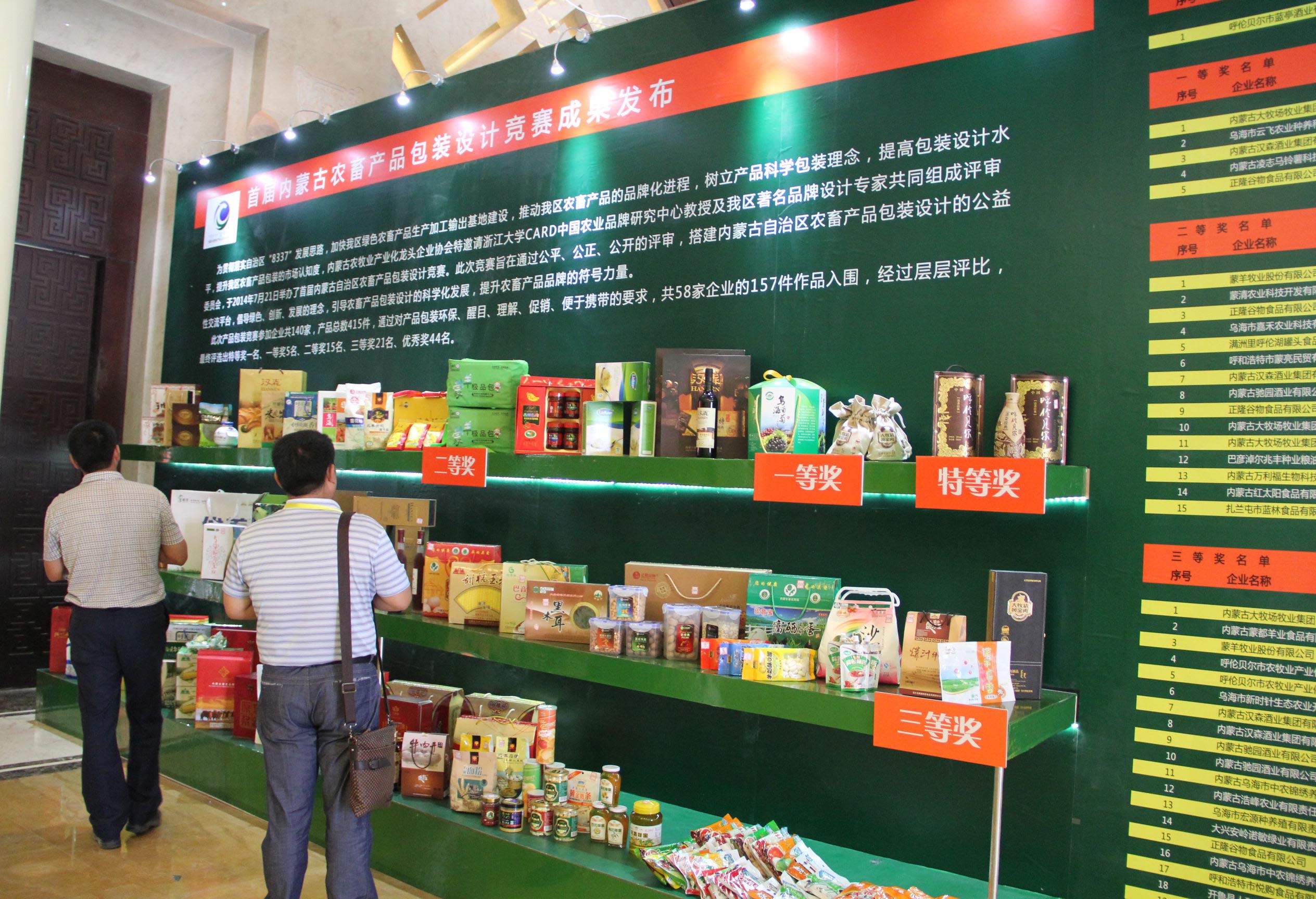 本次綠博會的最大亮點在于由農牧業(yè)廳授權,在中國·內蒙古綠色農畜產品博覽會組委會的大力支持下,協(xié)會認定的2014(第二屆)內蒙古“名優(yōu)特”農畜產品名單和首屆內蒙古農畜產品包裝設計競賽獲獎產品在綠博會上展出。此次共有76家企業(yè)生產的143個產品被認定為內蒙古“名優(yōu)特”產品,共有86件產品在包裝設計大賽中獲獎,其中特等獎1名、一等獎5名、二等獎15名、三等獎21名、優(yōu)秀獎44名。