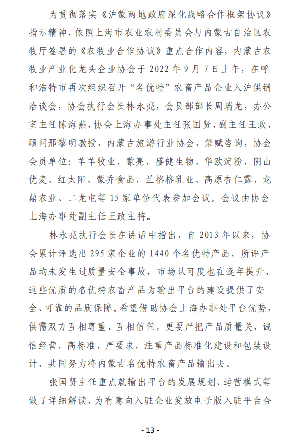 13  內(nèi)蒙古農(nóng)牧業(yè)產(chǎn)業(yè)化龍頭企業(yè)協(xié)會...