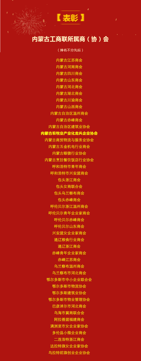 標(biāo)題:喜報!內(nèi)蒙古農(nóng)牧業(yè)產(chǎn)業(yè)化龍頭企業(yè)協(xié)會再次榮獲全國“四好”商會榮譽稱號