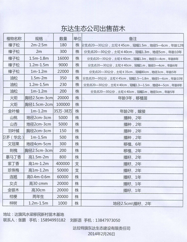 東達(dá)生態(tài)公司出售苗木
