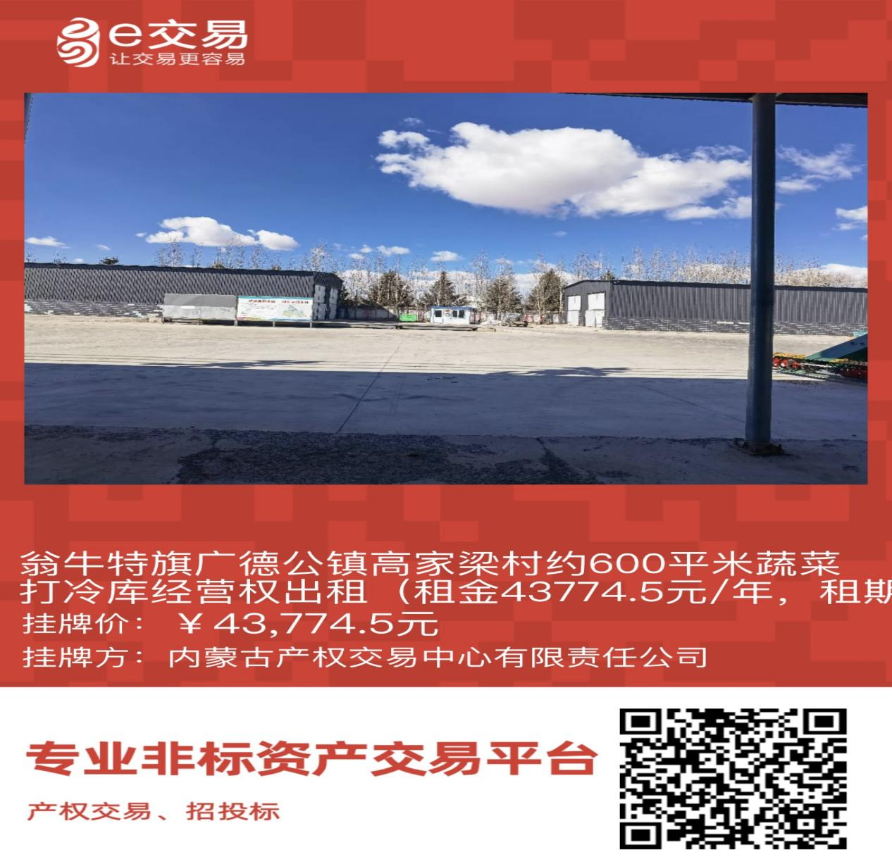 翁牛特旗廣德公鎮(zhèn)高家梁村約600平米蔬菜打冷庫經(jīng)營權出租(租金43774.5元/年,租期5年)