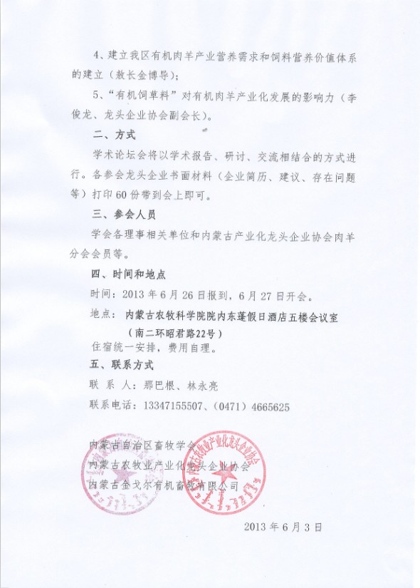 關(guān)于舉辦首屆內(nèi)蒙古有機肉羊產(chǎn)業(yè)經(jīng)濟發(fā)展學(xué)術(shù)論壇會的通知