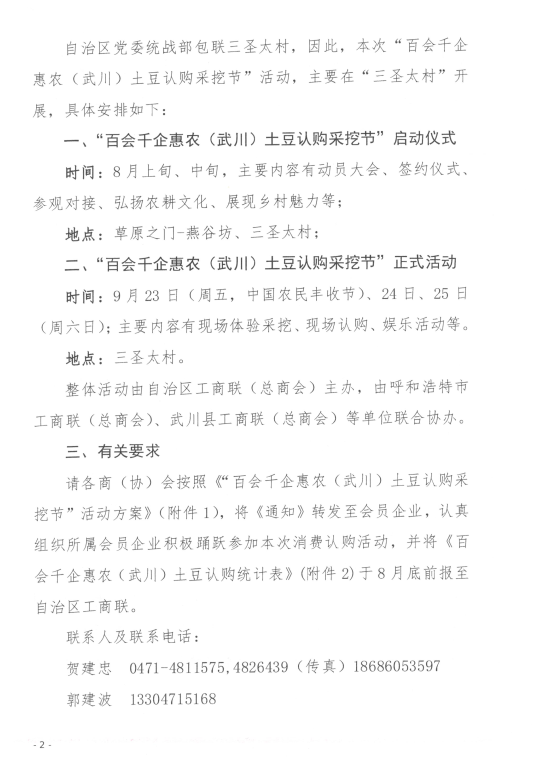 關(guān)于舉辦“百會(huì)千企惠農(nóng)(武川)土豆認(rèn)購采挖節(jié)”活動(dòng)的通知