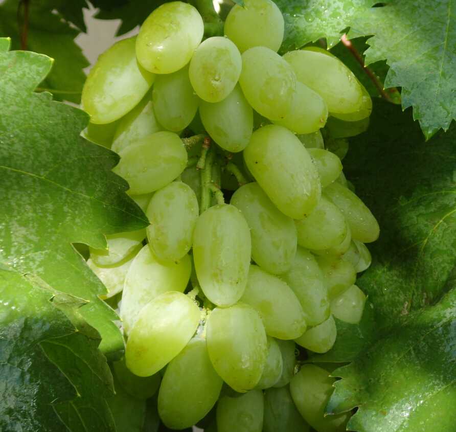 森田尼葡萄:別名青提,屬歐亞種。果實黃綠色,雞心形。果粒中等大,最大粒重6,平均粒重4-5。果穗大,果皮薄,果肉脆硬,有淡麝香味。
