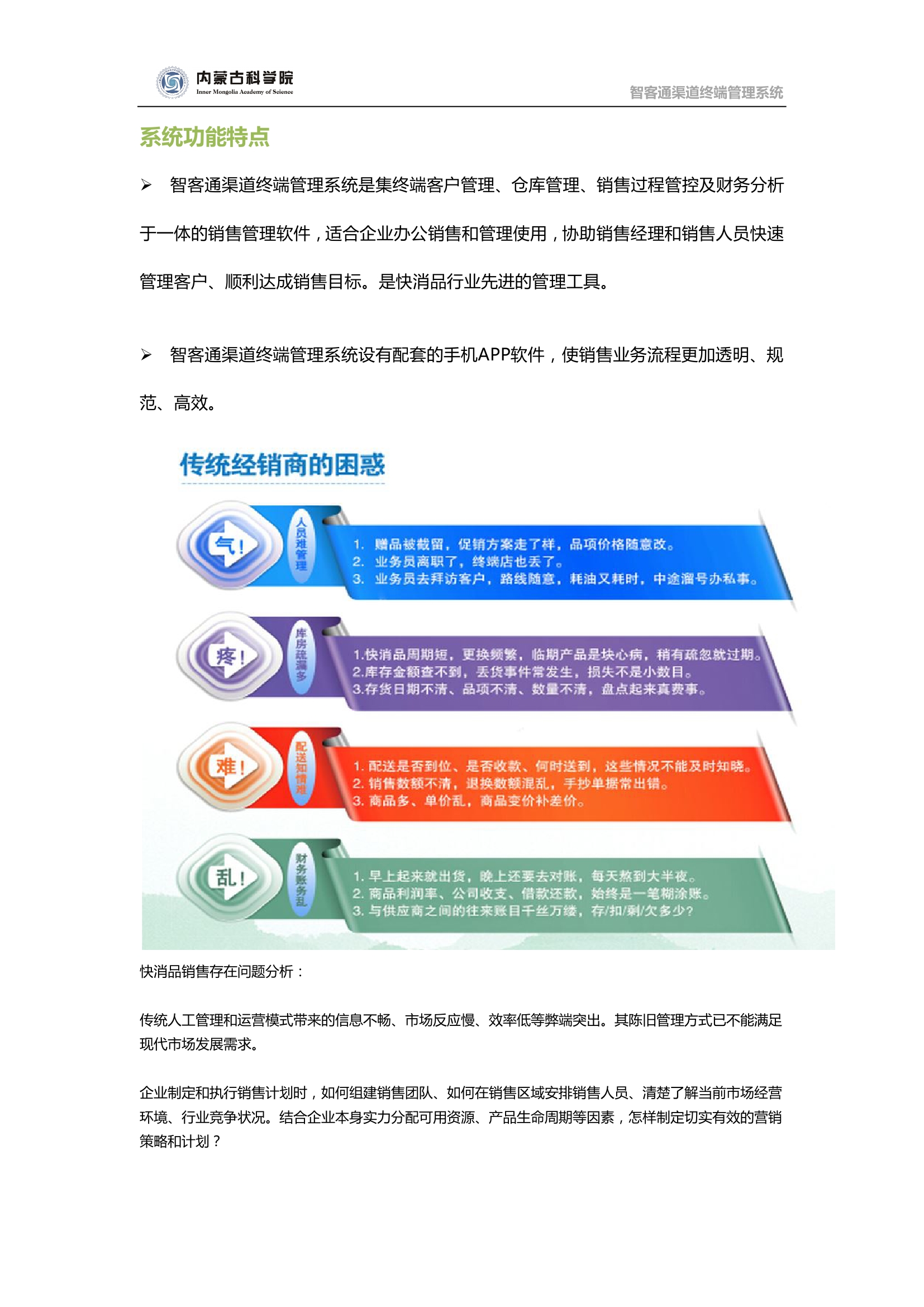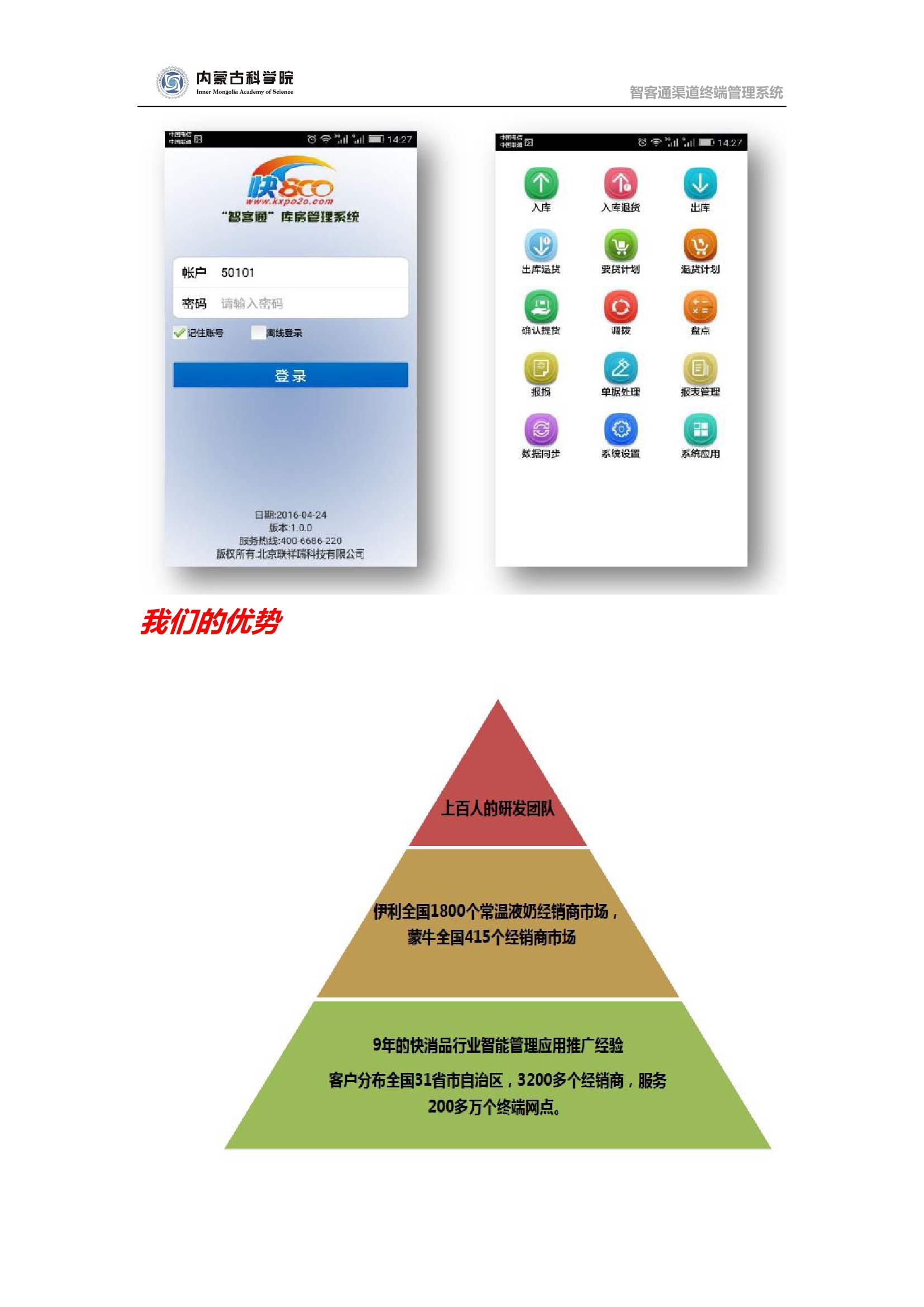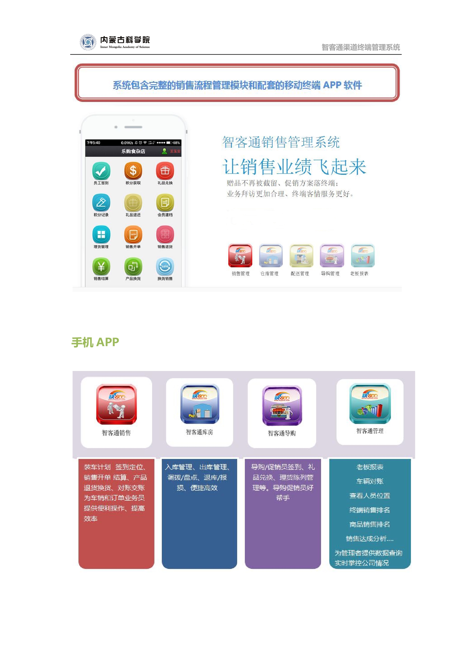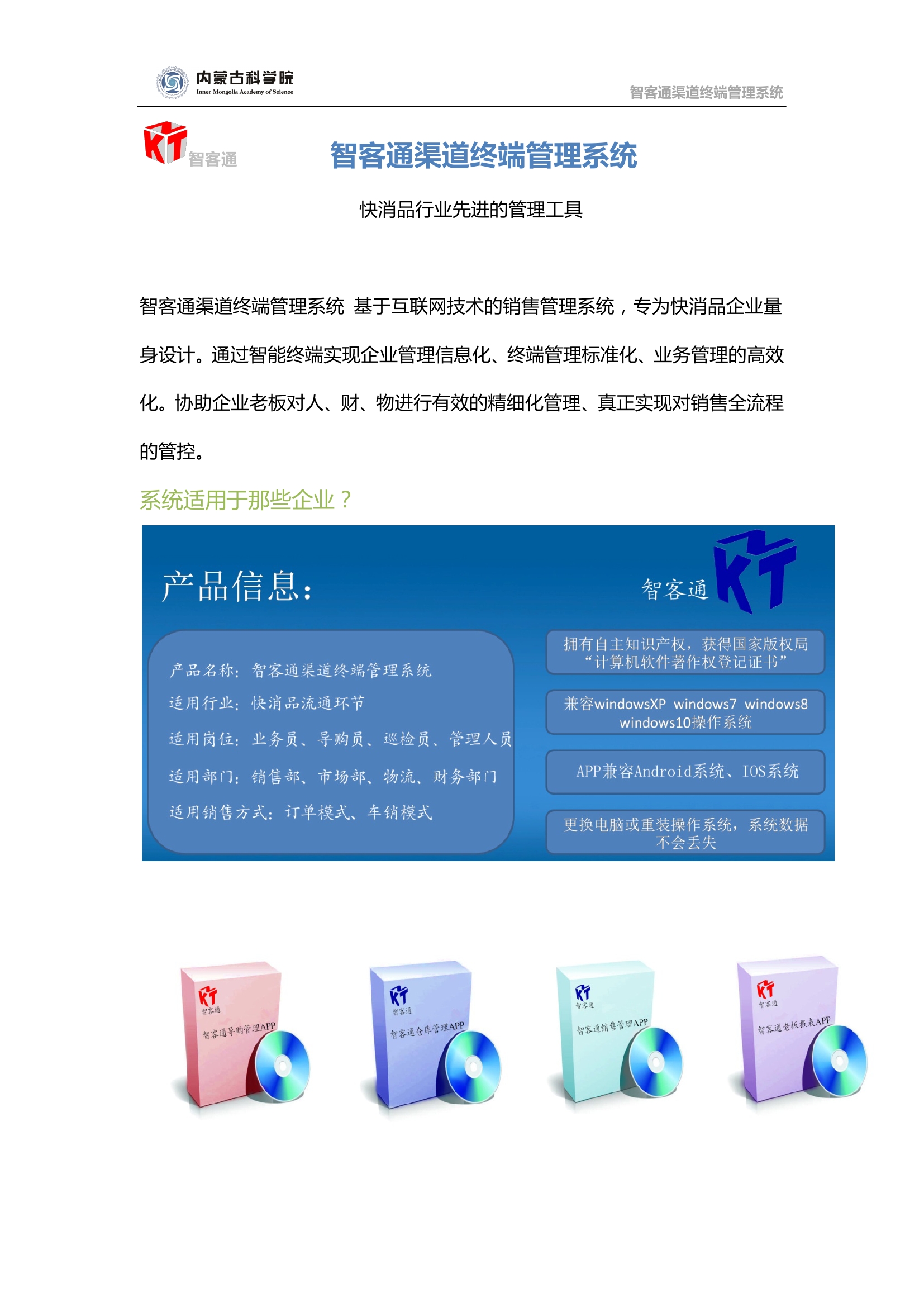產(chǎn)品名稱(chēng):內(nèi)蒙古科學(xué)院有限責(zé)任公司智客通渠道終端管理系統(tǒng)