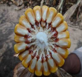 春播區(qū)從出苗至成熟126天左右。株型緊湊,株高286cm,穗位96cm。穗行數(shù)16-18行,紅軸,果穗整齊、均勻;出籽率高達(dá)90%,軸細(xì)、粒深米質(zhì)優(yōu);長(zhǎng)勢(shì)整齊一致,不空桿,穩(wěn)產(chǎn)性好。
