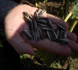 屬中晚熟種,生育期105天,株高180200cm,適應(yīng)性廣,種皮薄,易抓苗;抗病性強(qiáng)?;ūP直徑 18.521cm,單盤粒重151克左右,盤口緊密結(jié)實(shí);平均百粒重18.31克,籽粒飽滿,結(jié)實(shí)率高;籽粒長(zhǎng)2.0cm以上,寬0.9cm,種皮黑色帶白邊間有白條紋,顏色較為黑亮。